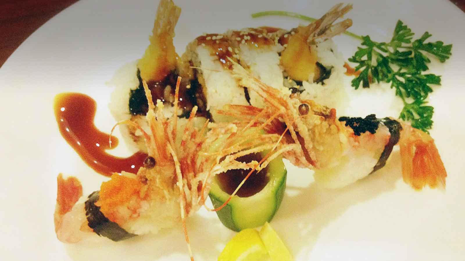 Our restaurant offers a wide array of fine Japanese sushi rolls, ranging from traditional rolls such as Futomaki and Salmon Rolls to new style rolls such as Las Vegas Rolls (shown above), Volcano Rolls and Rainbow Rolls.